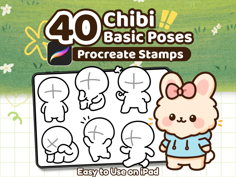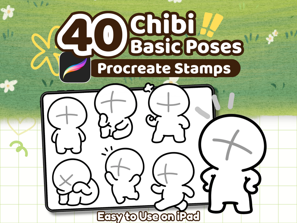 40 Chibi Pose Procreate Stamps โ Cute Drawing Guide & Base for Comics, Emotes & Stickers, Kawaii Characters